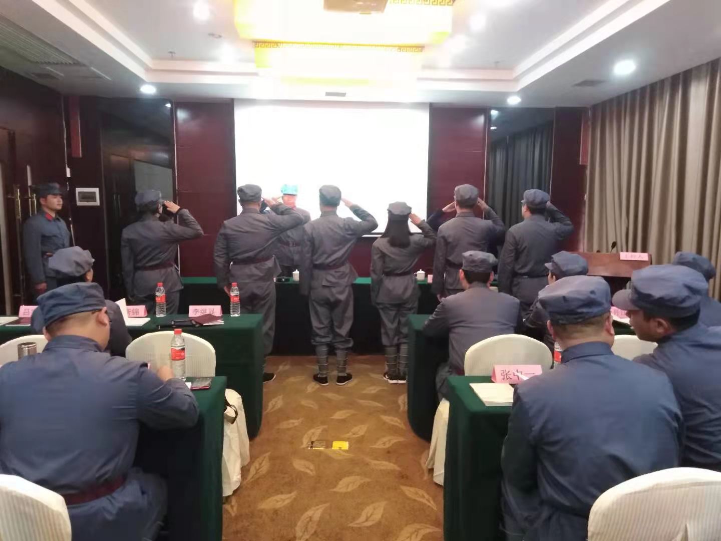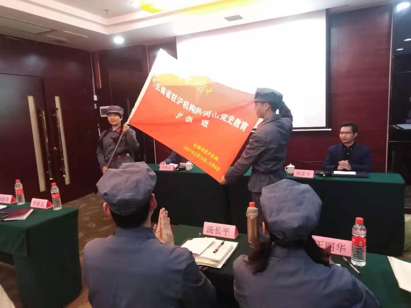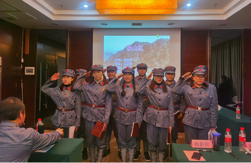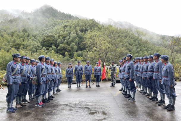 3月1日,全体学员身着红军服参加开班式。李继显同志作培训动员讲话,井冈山干部教育学院副院长周爱华致辞并向培训班授班旗,全体学员面对班旗进行庄严宣誓。
