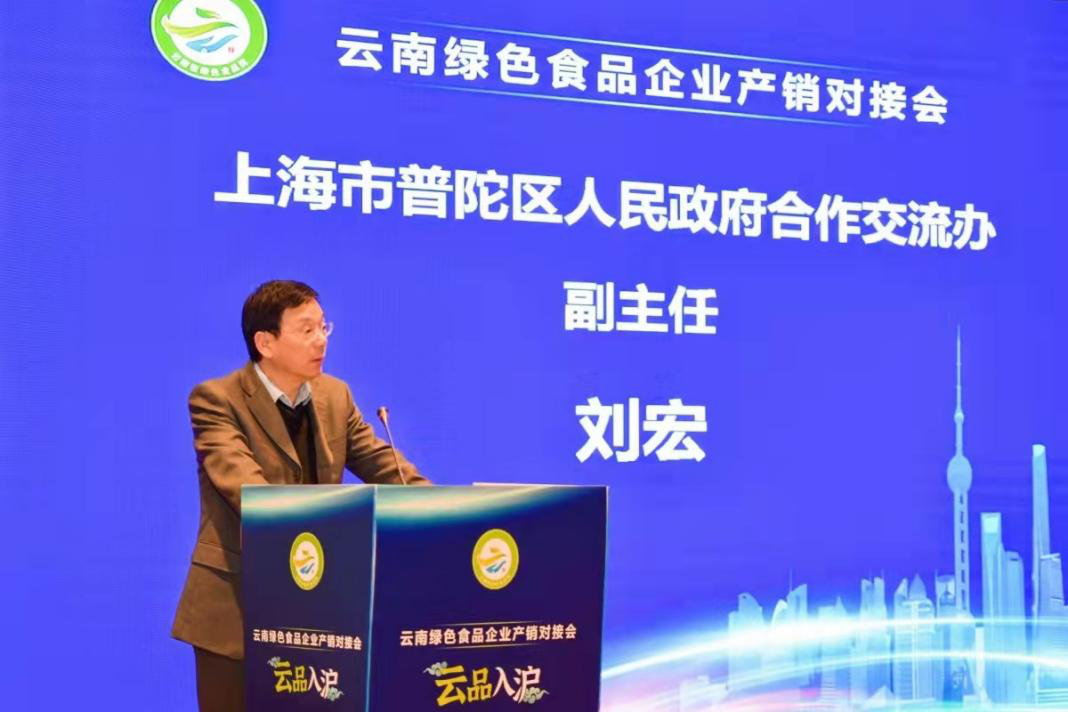 上海市普陀区人民政府合作交流办副主任刘宏致辞时说,以产品为媒介,用消费搭桥梁,举办云南绿色食品产销对接会,让云南的特色优势和农产品在线下相遇,不仅丰富沪上市民的餐桌,而且在实践中开拓一条帮扶之路。沪企入滇、云品入沪的经贸往来,彰显了上海、云南两地从单向帮扶到合作共赢的转变,消费帮扶让普陀区和昆明、昭通实施了互补优势、互利共赢 ,推动区域协调发展,共同进步。希望不断探索上海企业+云南资源、上海市场+云南产品、上海总部+云南基地、上海研发+云南制造的合作模式,推动两地各个层面的合作交往。