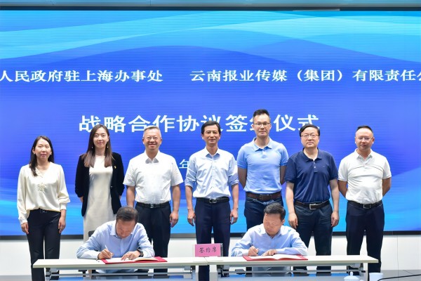 云南省人民政府驻上海办事处党组成员、副主任李继显与云南报业传媒(集团)有限责任公司党委委员、副总经理李阳喜代表双方签订协议。根据协议,双方将围绕省委、省政府中心工作和沪滇协作重点任务,以“云品入沪”和“沪企云行”系列活动为抓手,发挥各自优势,整合资源,搭建平台,共同推动沪滇协作新阶段取得新成效,助力云南高质量发展。